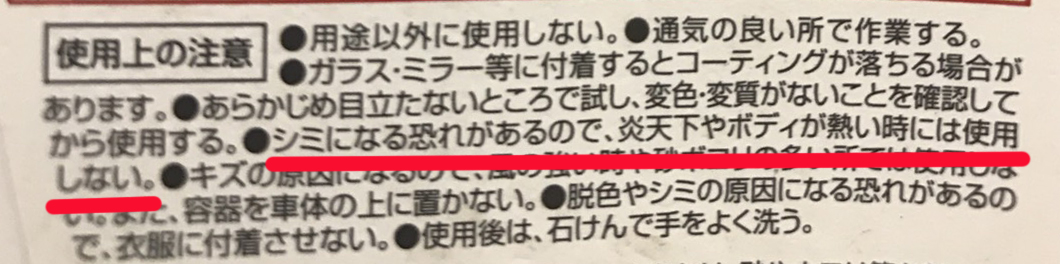 現在数多くのカーシャンプーが発売されておりますが、全てのカーシャンプーの取扱い説明書に、必ず決まって同じ注意事項が記載されているのをご存知でしょうか?